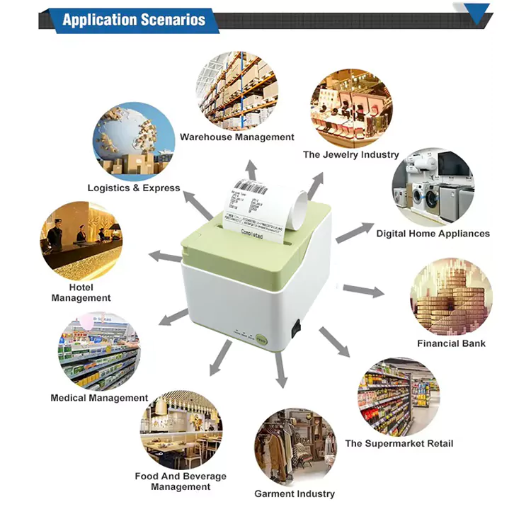 ความเร็วในการพิมพ์ 250 มม./วินาที โดยมีความกว้างการพิมพ์ที่มีประสิทธิภาพ 72 มม. หรือ 64 มม. รองรับบาร์โค้ดหลายแบบ รวมถึง UPC-A, EAN-13, CODE39 และ CODE128 ทำให้เหมาะสำหรับอุตสาหกรรมต่างๆ เช่น การจัดเลี้ยง ห้างสรรพสินค้า และซูเปอร์มาร์เก็ต