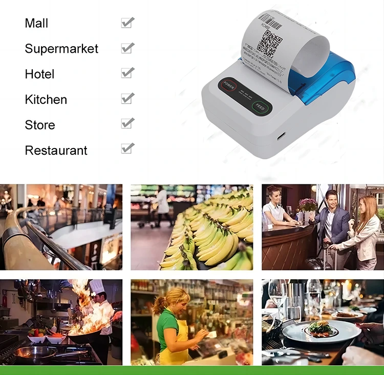 เครื่องพิมพ์ไร้หมึกไร้สาย Bluetooth แบบใช้ความร้อนกำลังได้รับความนิยมเพิ่มมากขึ้น และมีการใช้อย่างแพร่หลายในหลายอุตสาหกรรม เช่น การค้าปลีก การจัดเลี้ยง โลจิสติกส์ และการดูแลสุขภาพ อุตสาหกรรมค้าปลีกสามารถใช้เพื่อพิมพ์ใบเสร็จรับเงินจากการช้อปปิ้งได้อย่างรวดเร็ว ในอุตสาหกรรมจัดเลี้ยงสามารถพิมพ์ออเดอร์ได้ทันที ในอุตสาหกรรมโลจิสติกส์ สามารถพิมพ์ฉลากการจัดส่งแบบด่วนได้ ในอุตสาหกรรมการแพทย์ สามารถพิมพ์เวชระเบียนและใบสั่งยาได้ สถานการณ์การใช้งานเหล่านี้ล้วนแสดงให้เห็นถึงประสิทธิภาพและการใช้งานจริงของเครื่องพิมพ์ Bluetooth แบบใช้ความร้อน