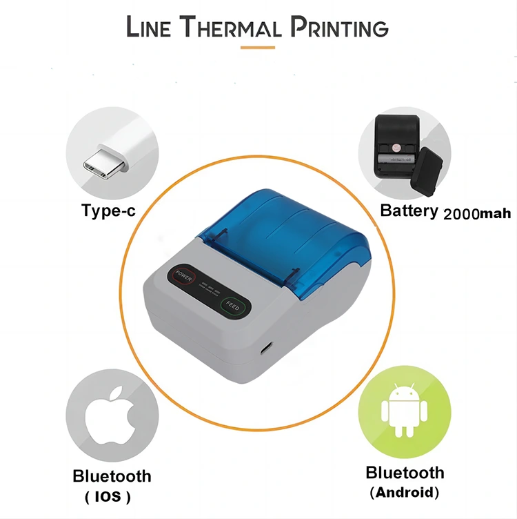• เครื่องพิมพ์ใบเสร็จความร้อน 58 มม. บลูทูธเครื่องพิมพ์ใบเสร็จความร้อน 58 มม. บลูทูธ